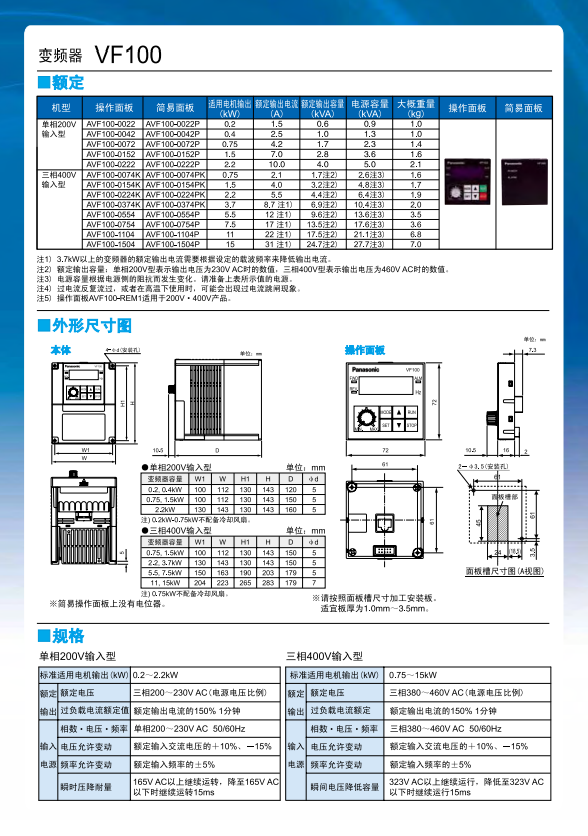 松下簡(jiǎn)易矢量型變頻器VF100C系列產(chǎn)品樣本