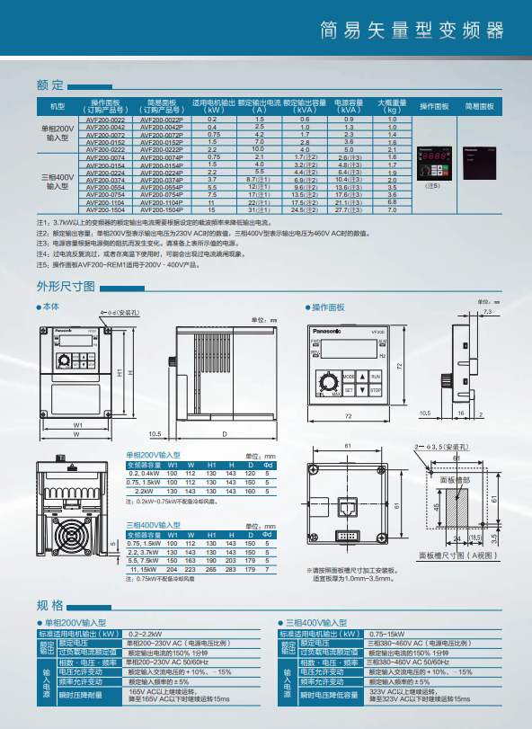 松下簡(jiǎn)易矢量型變頻器VF200系列產(chǎn)品樣本