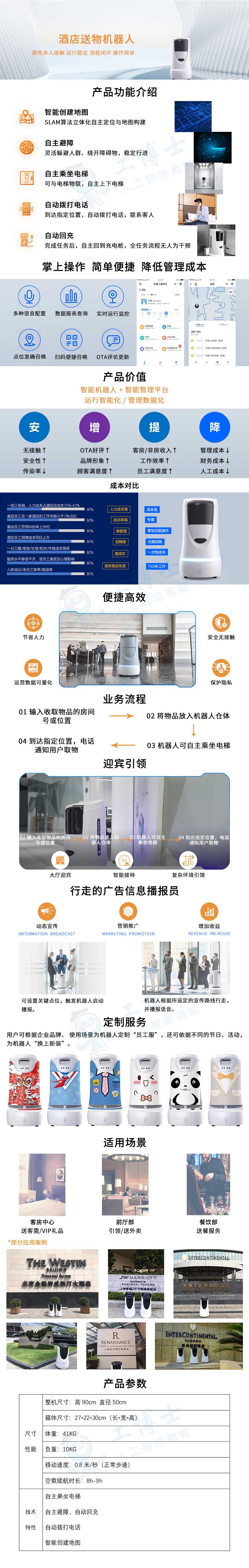 消殺、清潔、配送、巡檢、迎賓機器人