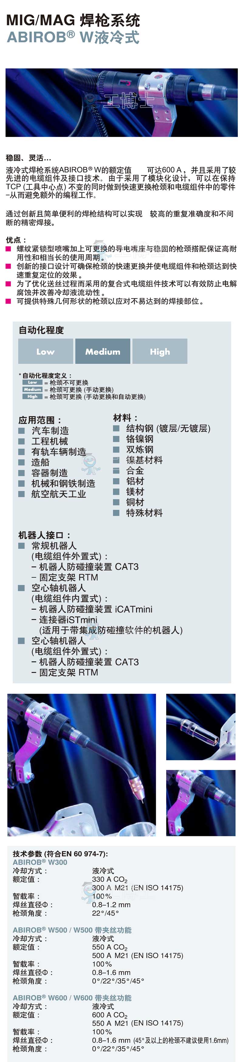 商城 ![]() ![]() BINZEL賓采爾MIG/MAG焊槍系統(tǒng)ABIROB W300品牌 :賓采爾 系列 :ABIROB W 型號(hào) :ABIROB W300