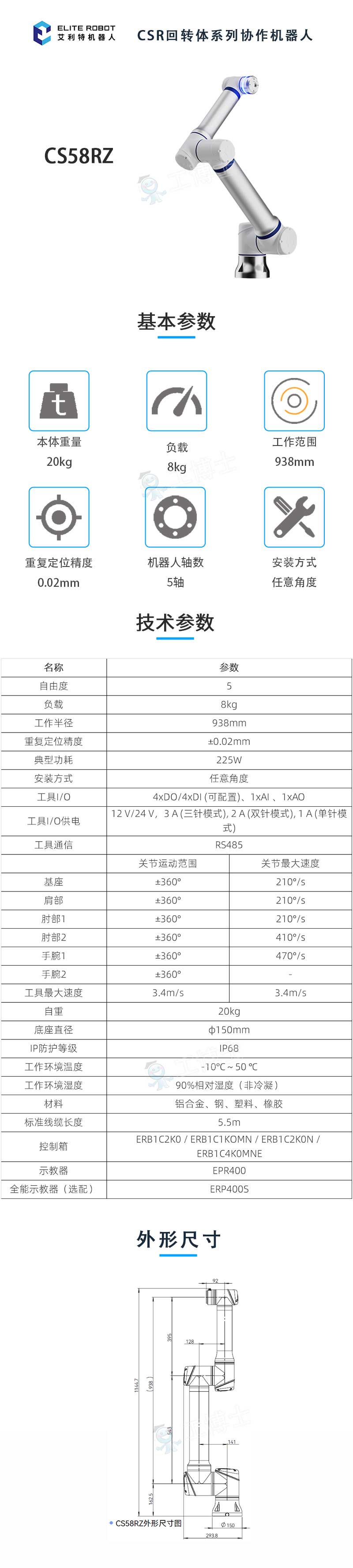 商城 ![]() 艾利特回轉(zhuǎn)體協(xié)作機(jī)器人 CS58RZ品牌 :艾利特 系列 :CSR 型號 :CS58RZ