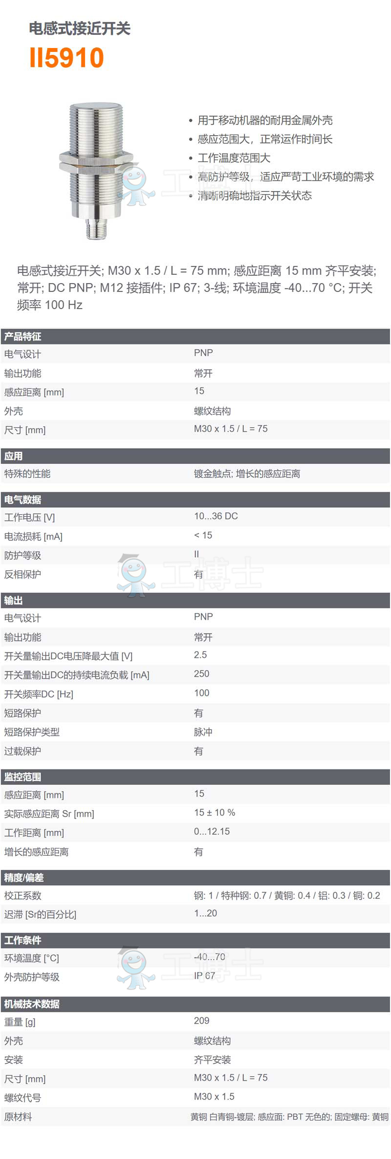 商城 ![]() ![]() 易福門IFM電感式接近開關(guān)II5910品牌 :易福門 系列 :電感式接近開關(guān) 型號(hào) :II5910