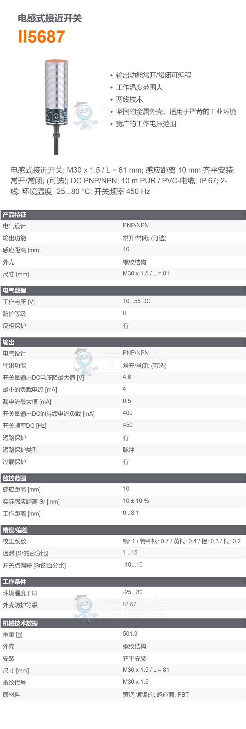 商城 ![]() ![]() 易福門IFM電感式接近開關(guān)II5687品牌 :易福門 系列 :電感式接近開關(guān) 型號 :II5687