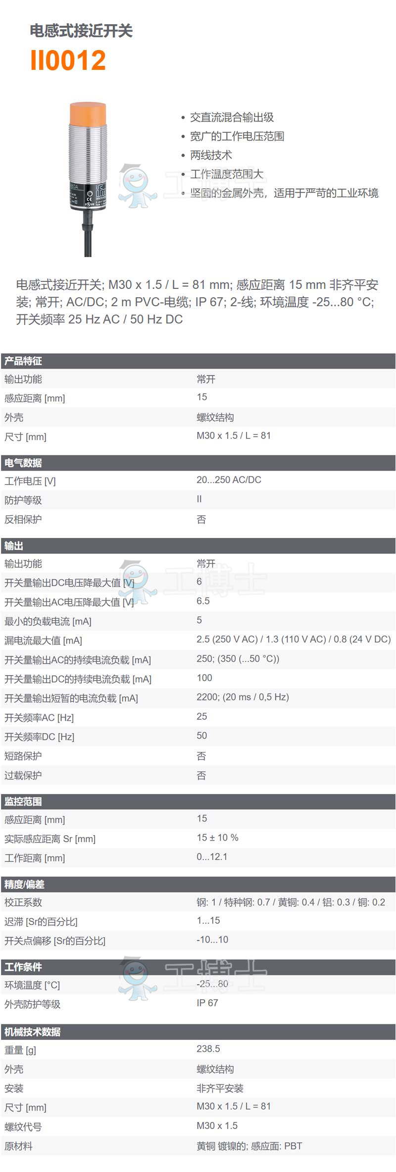- 感應(yīng)距離 :15mm