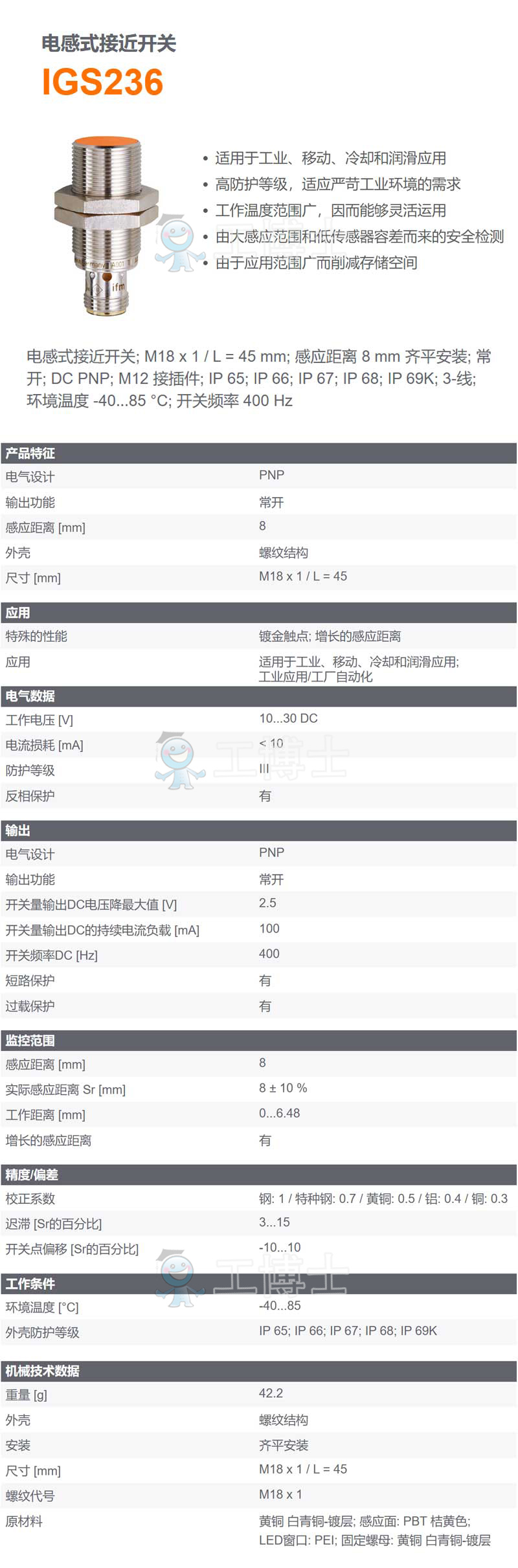 商城 ![]() ![]() 易福門(mén)IFM電感式接近開(kāi)關(guān)IGS236品牌 :易福門(mén) 系列 :電感式接近開(kāi)關(guān) 型號(hào) :IGS236