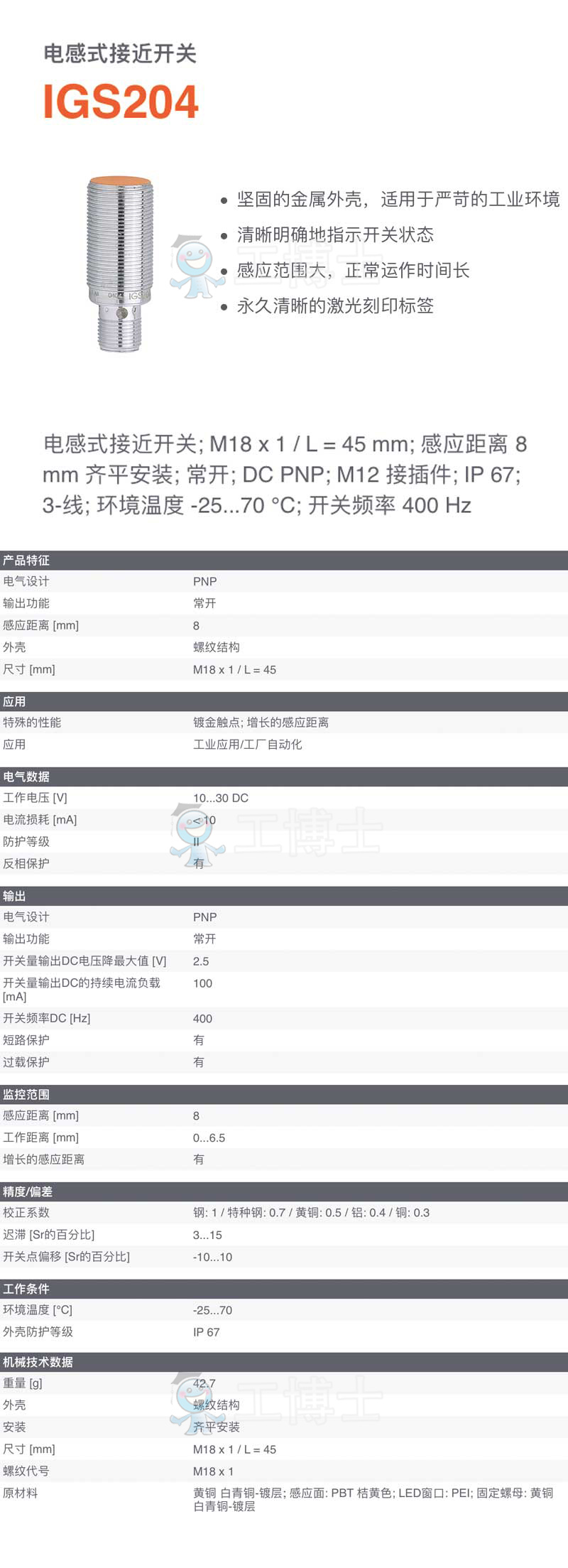 商城 ![]() ![]() 易福門IFM電感式接近開關(guān)IGS204品牌 :易福門 系列 :電感式接近開關(guān) 型號 :IGS204