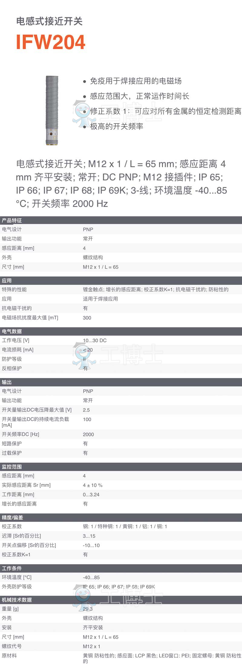 商城 ![]() ![]() 易福門IFM電感式接近開關(guān)IFW204品牌 :易福門 系列 :電感式接近開關(guān) 型號 :IFW204