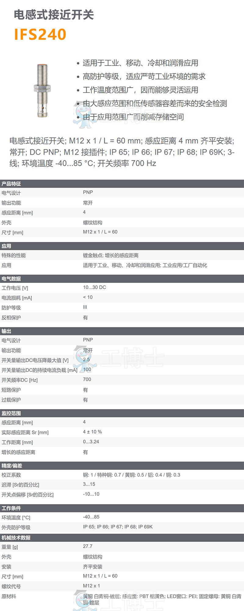 商城 ![]() ![]() 易福門IFM電感式接近開關(guān)IFS240品牌 :易福門 系列 :電感式接近開關(guān) 型號 :IFS240