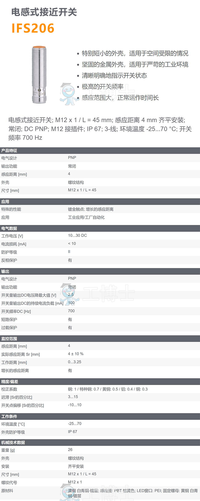 商城 ![]() ![]() 易福門IFM電感式接近開關(guān)IFS206品牌 :易福門 系列 :電感式接近開關(guān) 型號 :IFS206