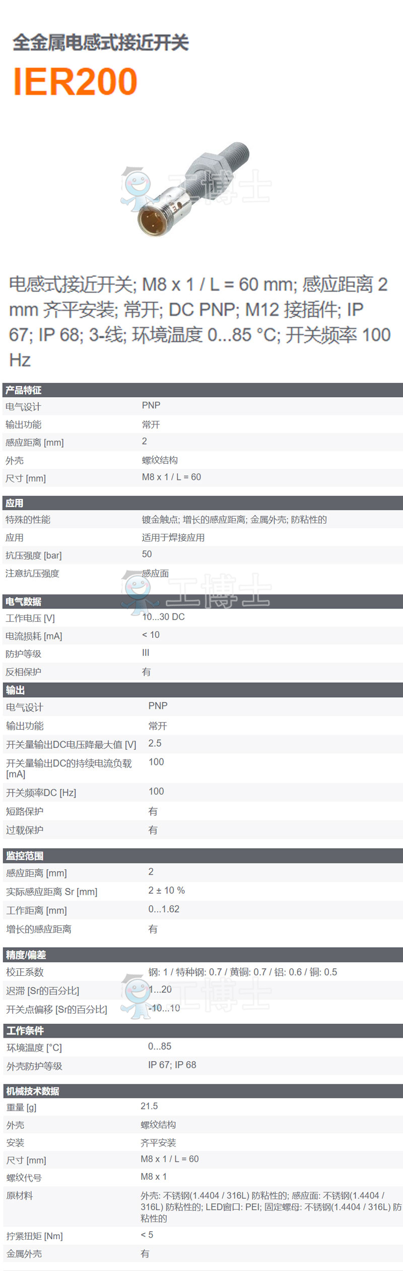 商城 ![]() ![]() 易福門IFM電感式接近開關(guān)IER200品牌 :易福門 系列 :電感式接近開關(guān) 型號(hào) :IER200