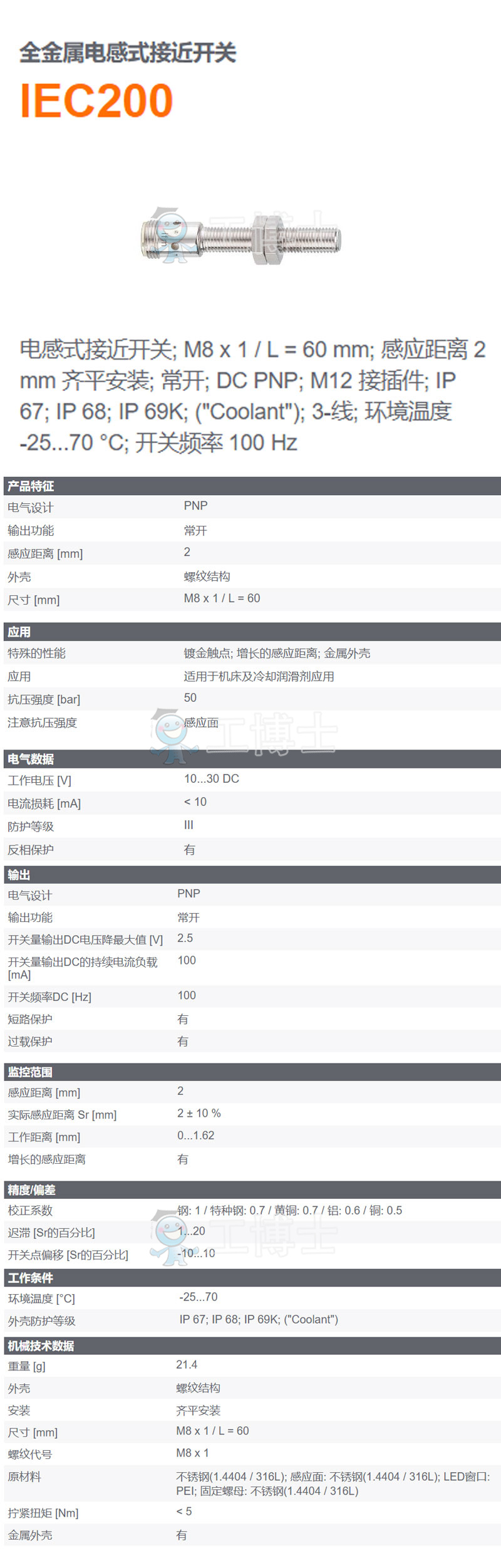 商城 ![]() ![]() 易福門IFM電感式接近開關IEC200品牌 :易福門 系列 :電感式接近開關 型號 :IEC200