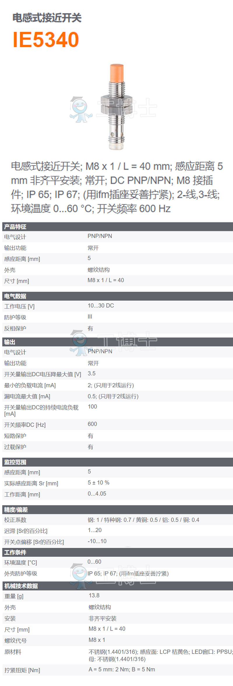 商城 ![]() ![]() 易福門IFM電感式接近開關(guān)IE5343品牌 :易福門 系列 :電感式接近開關(guān) 型號(hào) :IE5343