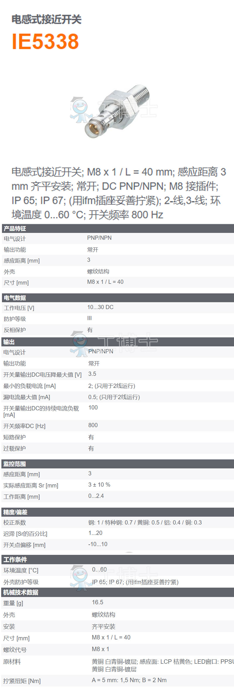 商城 ![]() ![]() 易福門IFM電感式接近開關IE5340品牌 :易福門 系列 :電感式接近開關 型號 :IE5340
