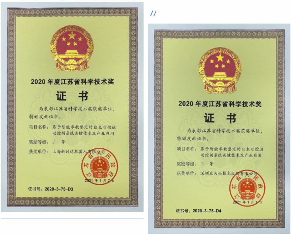近日,新時(shí)達(dá)子公司眾為興收到了由江蘇省科技廳統(tǒng)一頒發(fā)的“2020年度江蘇省科學(xué)技術(shù)獎(jiǎng)”證書,獲獎(jiǎng)項(xiàng)目為“基于智能參數(shù)整定的自主可控運(yùn)動(dòng)控制系統(tǒng)關(guān)鍵技術(shù)及產(chǎn)業(yè)應(yīng)用”。