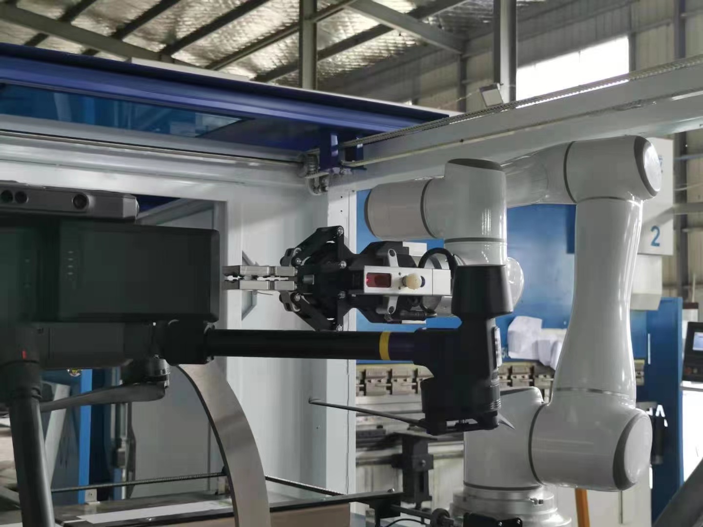 為了能夠在有限的空間內(nèi)發(fā)揮更大作用,艾利特推薦客戶使用艾利特EC66協(xié)作機器人,其自重僅17.5kg,工作半徑914mm,功率僅為250W。并且在機器人上搭配電動夾爪和激光測距傳感器,將執(zhí)行機構(gòu)高度集成,實現(xiàn)以上所有功能。電動夾爪和傳感器的供電及通訊線可直接連接在機器人末端的12針接頭上,不僅能為它們提供所需的24V電源,還能分別進行485和模擬量通訊,將其真正與機器人融為一體。再加上艾利特機器人足夠靈活的關(guān)節(jié),在有限的空間內(nèi)動作運行依然行云流水,得到了客戶的充分認可。