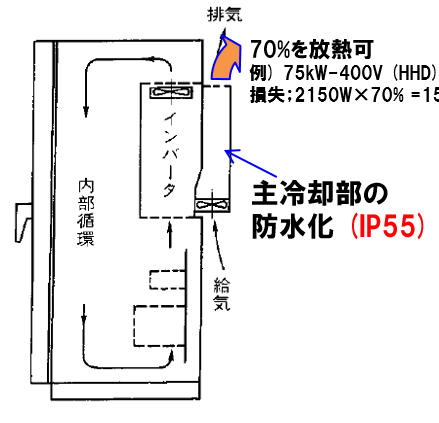 為此,我公司針對(duì)主冷卻單元采用了防水、防塵標(biāo)準(zhǔn)“IP55”※。由此,即使在惡劣的環(huán)境條件下,也同樣可以采用盤(pán)體外冷卻方式來(lái)進(jìn)行排熱。從而有助于進(jìn)一步實(shí)現(xiàn)設(shè)備的小型化和節(jié)能化。
