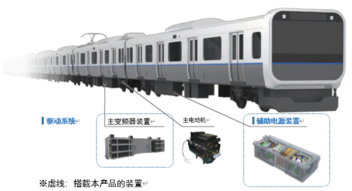 近年來,鑒于防止全球變暖,鐵路作為一種能效出色的環(huán)保交通工具備受矚目, 但由于車輛行駛會(huì)大量耗電,因此又面臨如何實(shí)現(xiàn)車輛設(shè)備更加小型輕量化以及如何降低能耗等課題。功率半導(dǎo)體(IGBT模塊)搭載于鐵路車輛驅(qū)動(dòng)系統(tǒng)的主變頻器裝置以及為空調(diào)系統(tǒng)和車內(nèi)照明等供電的輔助電源裝置上,是一種通過高速開關(guān)(斷電和通電)對交流電、直流電等進(jìn)行電力轉(zhuǎn)換的電子零部件。