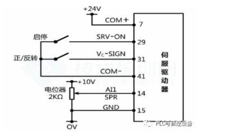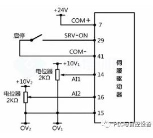 3、還可以用一個輸入開關(guān)來控制伺服電機的轉(zhuǎn)向,接線圖如下: