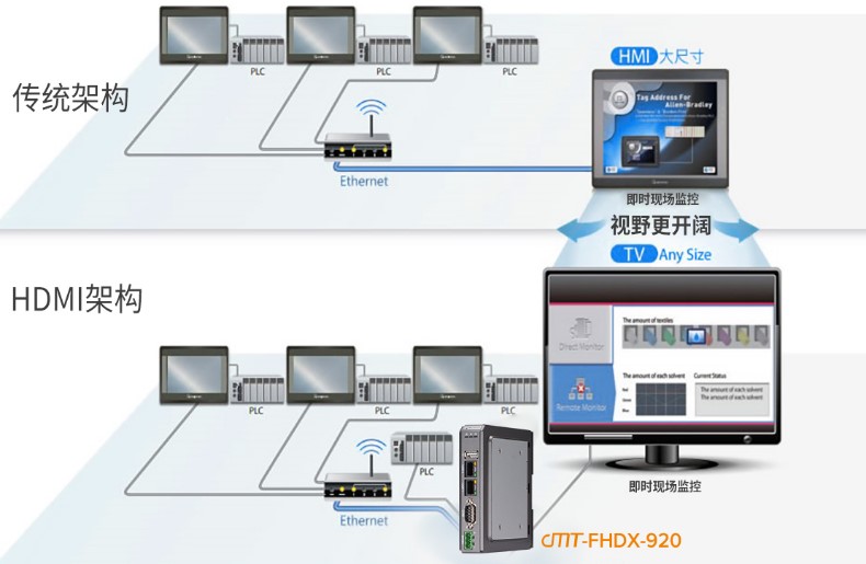 他們在方案上選擇cMT-FHDX-520+EasyAccess 2.0遠(yuǎn)程監(jiān)控,實現(xiàn)遠(yuǎn)程+大屏顯示的解決方案: