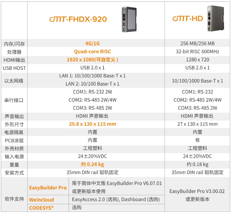 目前,威綸通可以實現(xiàn)大屏解決方案的產(chǎn)品型號如下:cMT-FHDX-920*、cMT-HD,產(chǎn)品規(guī)格參照下表: