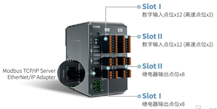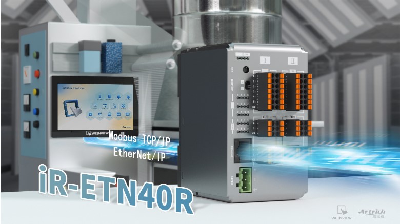 iR-ETN40R內(nèi)置MODBUS TCP/IP Server與EtherNet/IP Adapter協(xié)議,提供24點數(shù)字輸入和16點繼電器輸出。