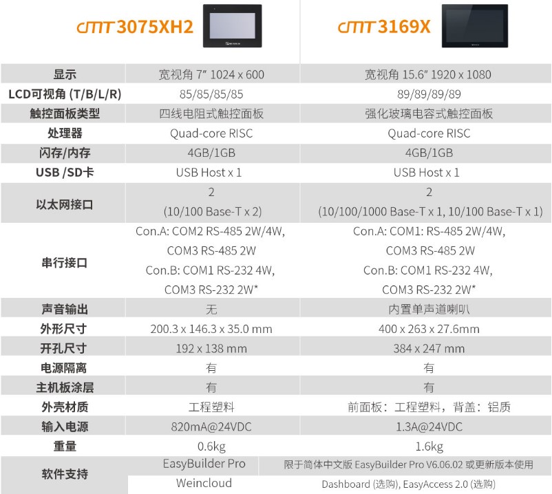威綸通新推出兩款進(jìn)階型cMT X人機(jī)界面,分別為7'cMT3075XH2 和 15.6'cMT3169X 。