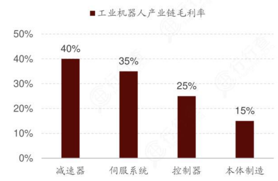 行行查 | 行業(yè)研究數(shù)據(jù)庫(kù) 資料顯示,工業(yè)機(jī)器人中技術(shù)難度最高的三大核心零部件分別是減速器、伺服系統(tǒng)和控制器,三者分別占工業(yè)機(jī)器人成本構(gòu)成的35%、25%、10%。