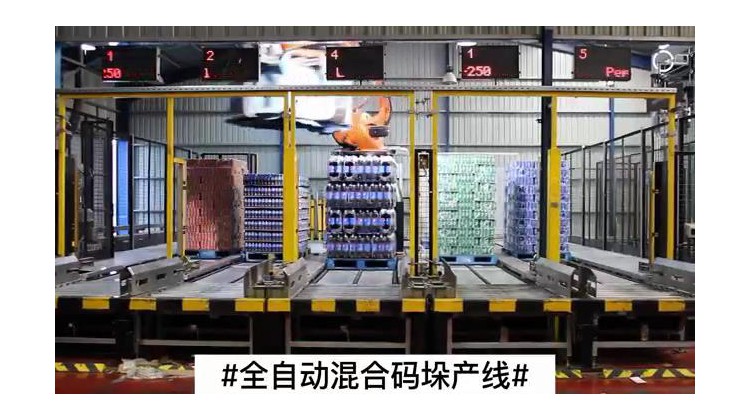 智能機(jī)器人參與全自動(dòng)混合碼垛產(chǎn)線,提率